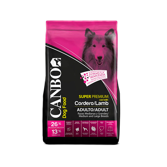 Canbo es un alimento super premium, 100% completo y balanceado, elaborado con ingredientes de alta calidad. Con su fórmula compuesta por proteínas de alta calidad, antioxidantes, fibra prebiótica, yuca schedigera, minerales orgánicas, vitaminas y omega 3 y 6, cubre las necesidades nutricionales de la mascota en cada etapa de vida. Esta presentación esta especialmente formulada para perros adultos de razas medianas y grandes.