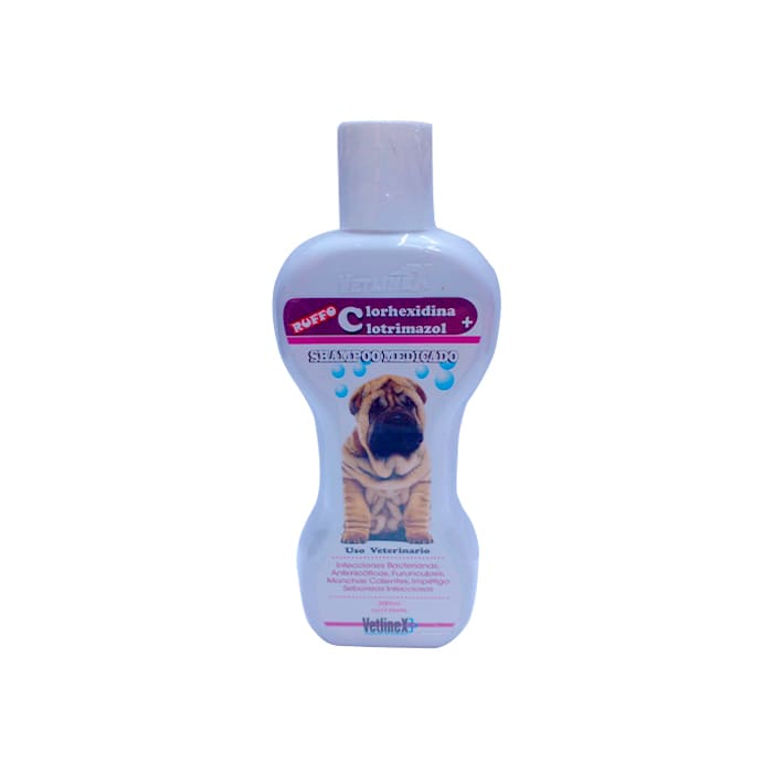 abundante agua y repetir si es necesario. Si el pelaje está muy sucio inicialmente, no se formará mucha espuma, en tal sentido es necesario repetir la aplicación para que penetre más el shampoo en el área afectada. Bañar cada 5 a 7 días por espacio de 1 a 3 meses hasta revertir el proceso patológico, y luego bañarlo solo con shampoo de la Línea Vetlinex ó shampoo medicado Dermasan X en forma preventiva.